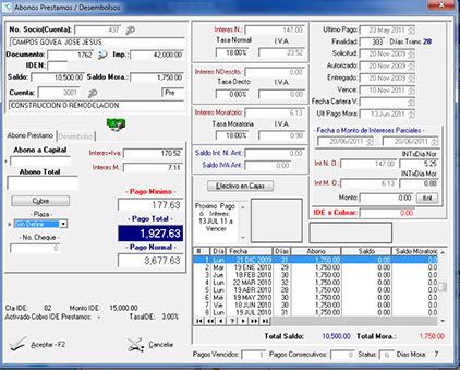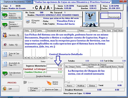Este importante apartado del sistema cuenta con muy completas y múltiples opciones para la operación de Depósitos, Retiros, Pagos parciales o totales de Créditos ....