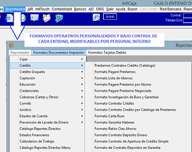 Moderno y novedoso complemento del Sistema "INFICAJA®" que permite a cada Entidad la necesaria independencia en el control de cada uno de sus formatos operativos (todo tipo de Contratos, Pagares,