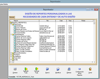 Adicionalmente este modulo cuanta con la facilidad de crear Reportes personalizados a la necesidad de cada Departamento o bien solicitar el diseño de los mismos, que de forma automática se ensamblan en el Sistema, sin necesidad de más que pegar un archivo.