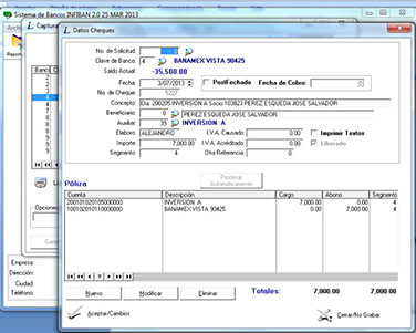 Este módulo, complementario de Inficaja nos permite el control de las chequeras las operaciones que las afectan sus saldos, además de analizar el origen y aplicación de los recursos ...